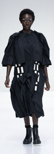 RE FORM defines Black Coffee’s narrative as a continuum from one collection to the next. Garments transcend mere fashion pieces and become part of the wearer’s collection, evolving from year to year. Trend-driven seasonality has been discarded in favour of acquiring collectors’ pieces. Colour blocking with small details reminiscent of flags or quilts. The process of deconstruction and reconstruction in the design process underpins many of the looks. The inspiration manifests inconspicuously. Although the references may seem divergent, they are all present: 18th-century frescoes and mosaics, Hokusai block prints, and Sashiko mending. The mission is always to fuse these varying influences together to create a vision that is harmonious and ultimately new.